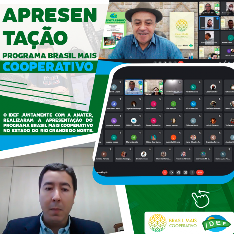 IDEF e ANATER realizam reunião de apresentação do Programa Brasil Mais Cooperativo com Gestores e agentes públicos com a participação de 85 municípios do Estado do Rio Grande do Norte.