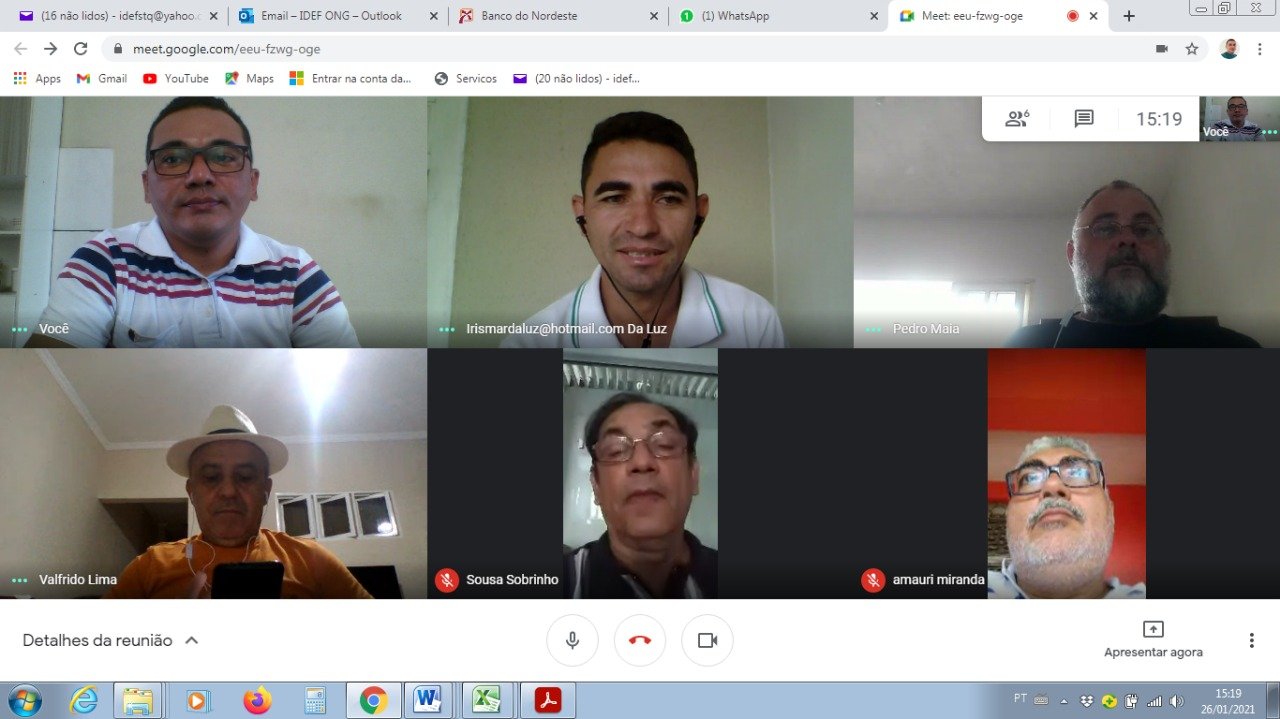 A diretoria e coordenadores do IDEF realizam reunião com o Sr. Sousa Sobrinho Agende de Desenvolvimento do Banco do Nordeste, com o Sr. Pedro Maia agrônomo da região Norte do estado do Ceará e representante da CODEP/SDA e com o Sr. Amauri Miranda agrônomo e secretário de agricultura da cidade de Caucaia.